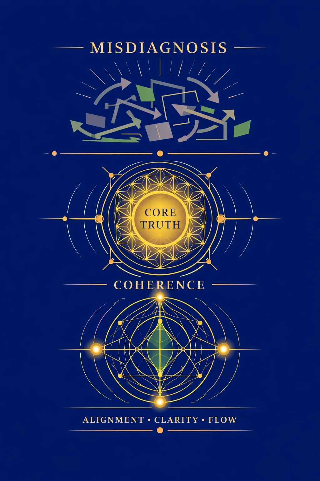 Instead of getting caught in the swirl of fixing and improving performance, this work restores truth and coherence at the center — where clarity, energy, and aligned action return naturally, and performance emerges as the byproduct of coherence.